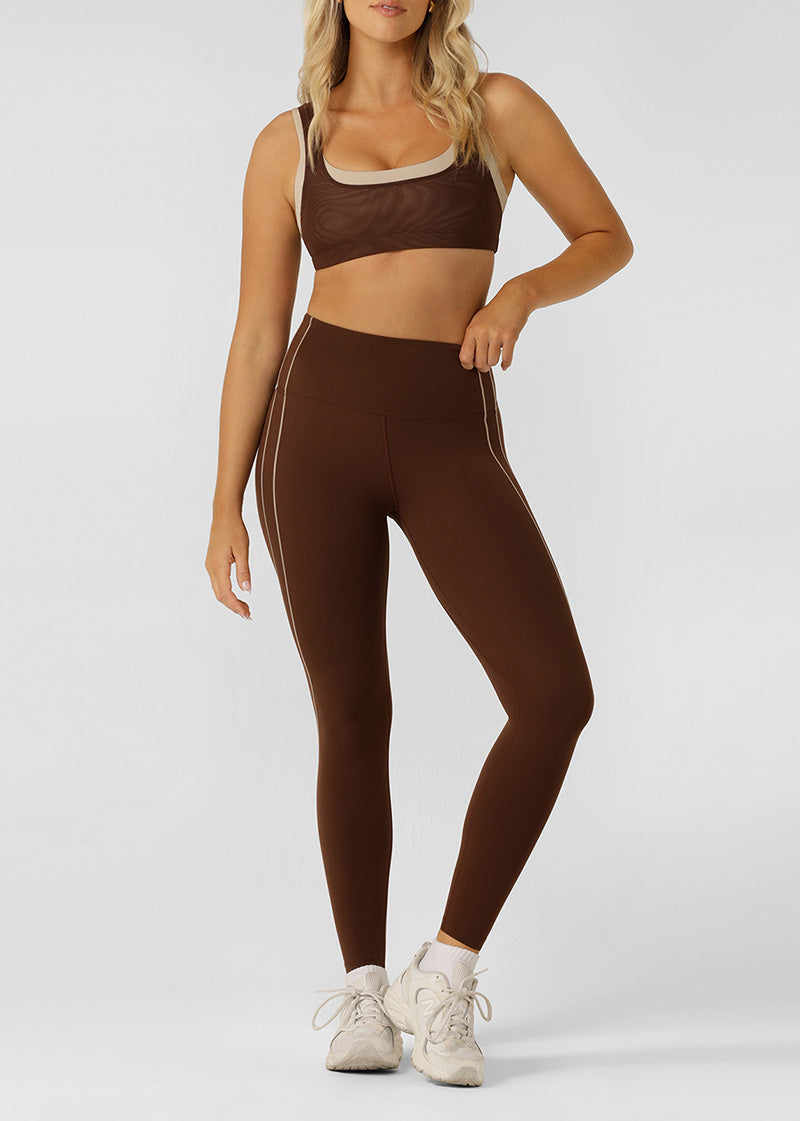 脚のラインを引き立てるコントラストテーピングが、レトロスポーティーな印象を演出。柔らかく伸びるBlissファブリックで、動きやすさと心地よさを兼ね備えた1枚です✨
