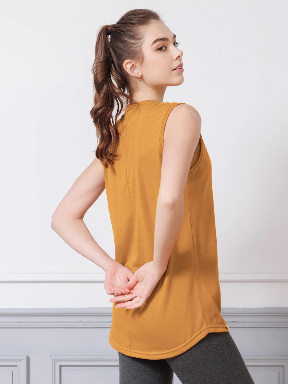 体型カバーしながら腕やウエストをすっきり見せるヨガタンク