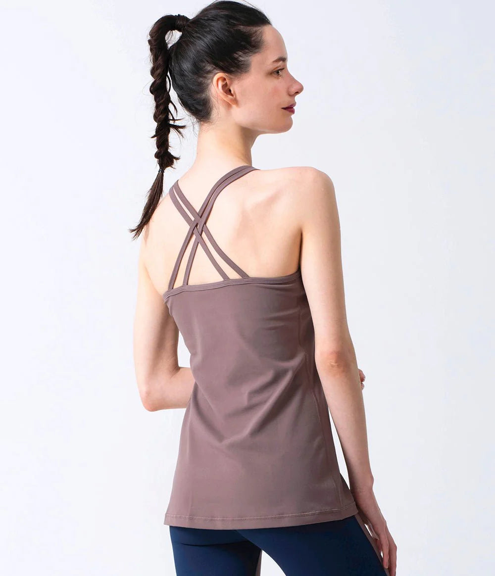 Yバックや長めの丈がスタイルを美しく見せてくれるヨガトップス。吸水速乾で蒸れ知らず、さらに高い耐久性や伸縮性に優れたテクニカル生地が特徴。機能・デザイン性共に優れているので、ヨガやスポーツだけでなくデイリー使いとしても最適。