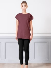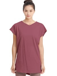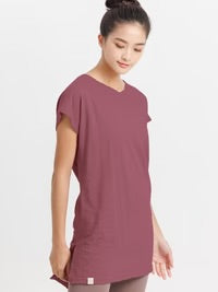 肌に優しいコットン100%のチュニックTシャツ。長めの丈感でおなかやヒップをカバーし。サイドスリットが体の動きを妨げません。二の腕を細く魅せるフレンチスリーブが女性らしい印象に。速乾性に優れたコットンスラブ生地はヨガやスポーツはもちろん、普段のリラックスウェアとしても幅広く使える優秀トップスです。