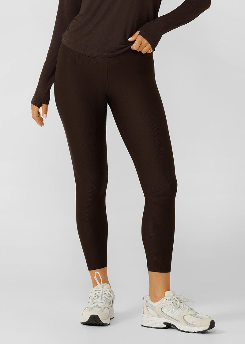 「Dawn to Dusk Ankle Biter Leggings」は、立体感のあるDiagonal Active Rib素材を使用。