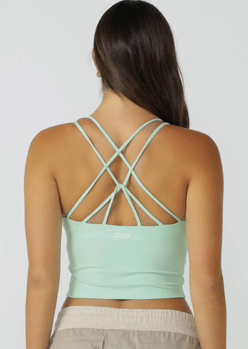 「Lotus Bra Tank Combo」は、透けにくく汗を素早く吸収・発散するNothing 2 See Here™ファブリックを使用。なめらかで柔らかな肌ざわりが特長で、スタジオワーク中も快適に着用できます。
