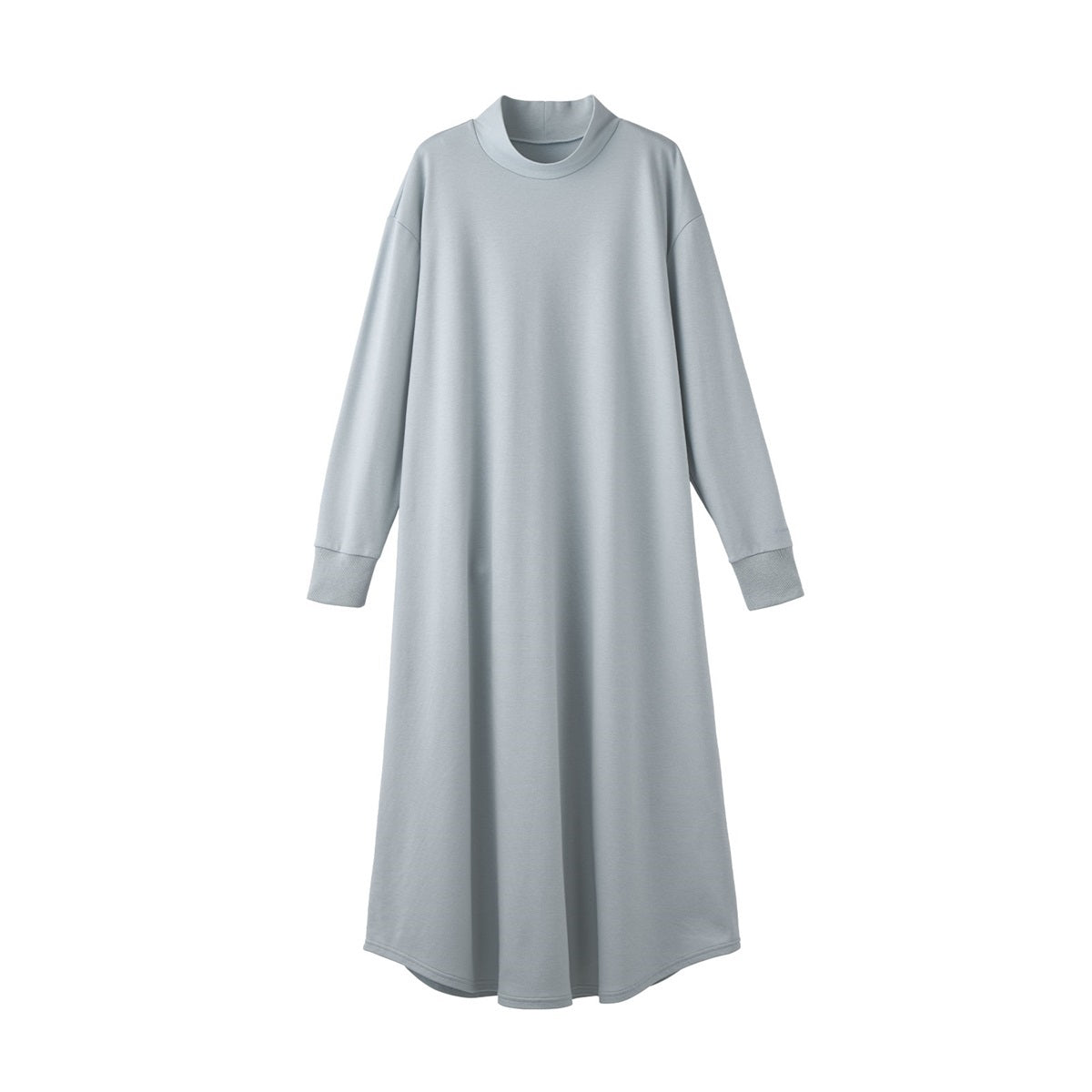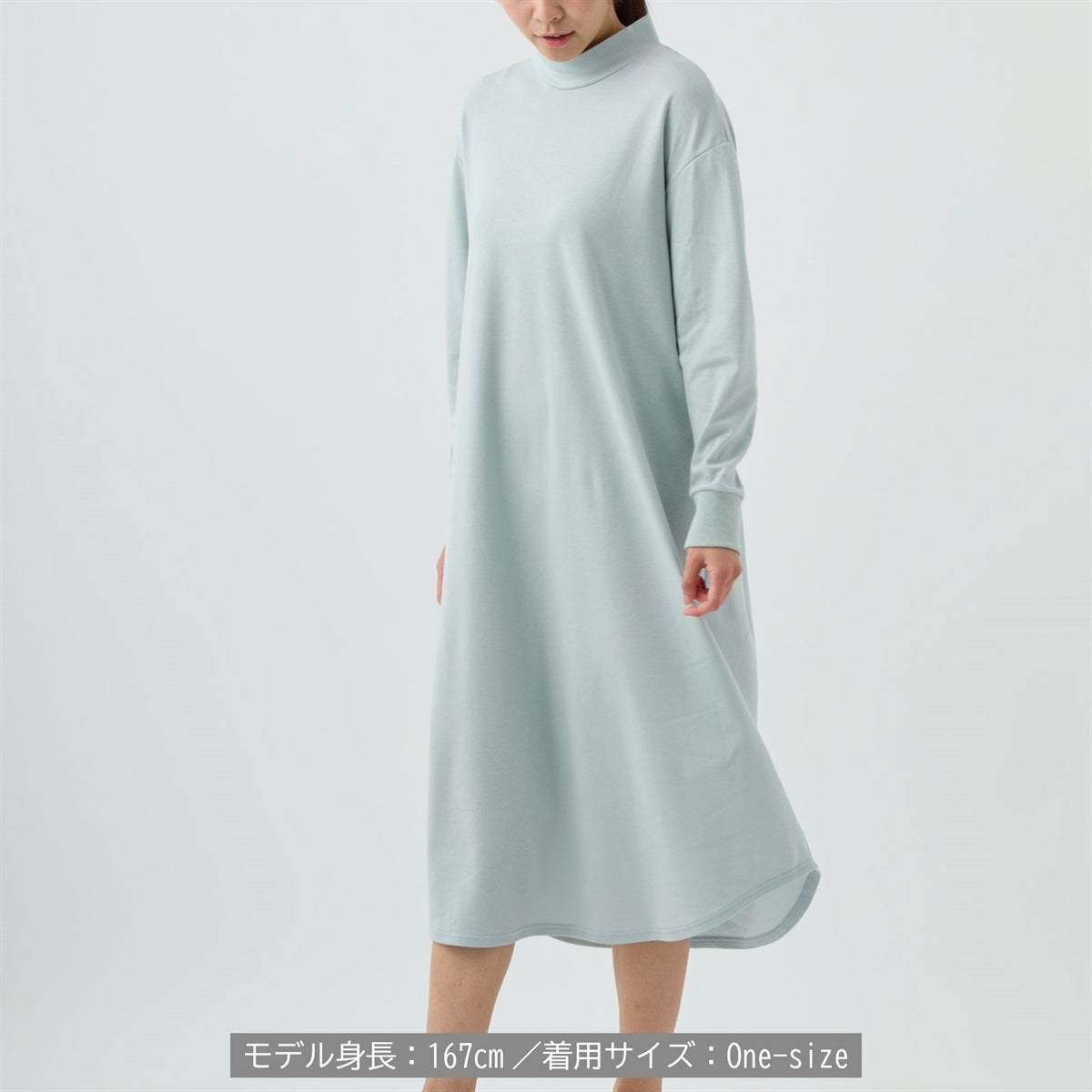 ドロップショルダーの A ラインが女性らしいシルエットを演出してくれます。 首元はハイネックであたたかく、やわらかい素材で締め付け感がないためストレスを感じません。 レギンスと合わせてコーディネイトしても◎